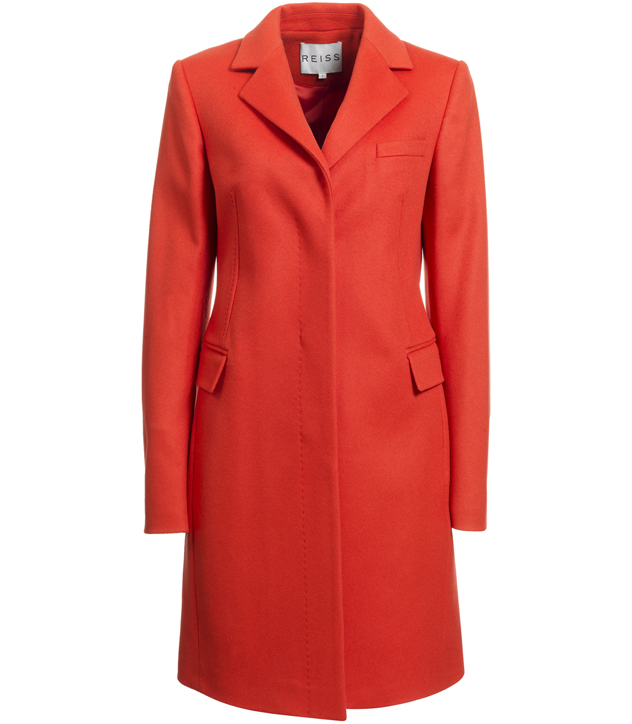Juniper Lava Red Collared Topcoat, £275 £183, available at Reiss.