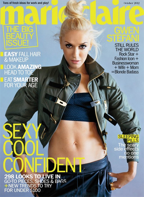 This time, Gwen is posing fiercely for Marie Claire US’s October issue, and we’re really pleased that it’s a bit different to her other two front cover appearances. Just goes to show how versatile she is! And is it just us, or does the cover pic look like it could have been taken from her former No Doubt days? (As in… 15 years ago!) How does she look like she hasn’t aged a day?!