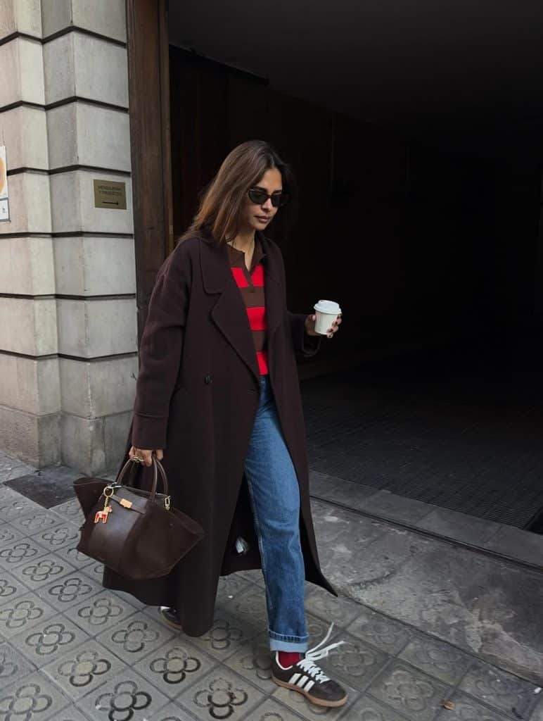 The Sambas keep things casual and cool, while the coat elevates the entire outfit.