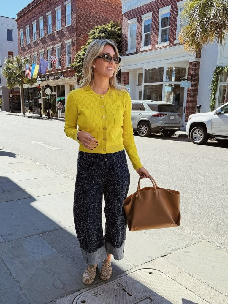 If you’re not sure where to start, try pairing a colorful cardigan with pieces in the same color family for a monochromatic, cohesive vibe.