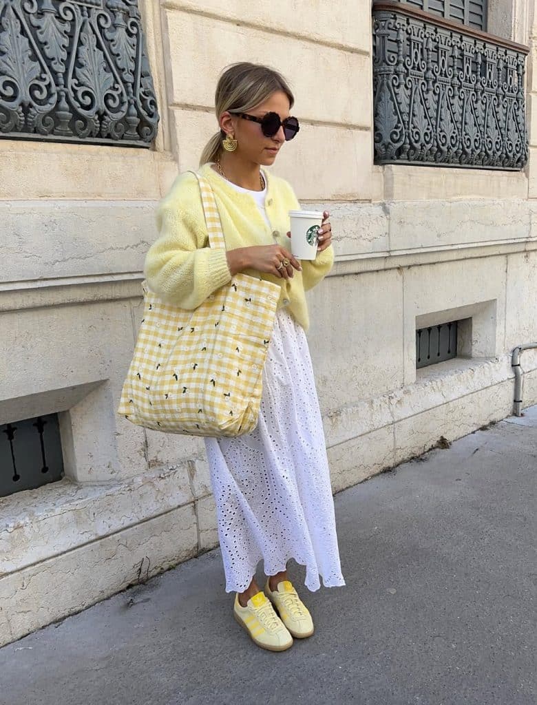Want to keep things laid-back while still looking stylish? Think white leather sneakers, pastel canvas kicks, or minimalist slip-ons.