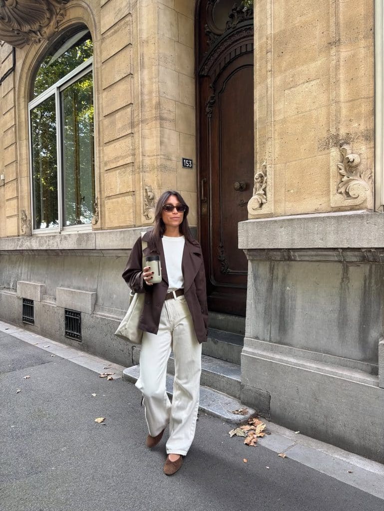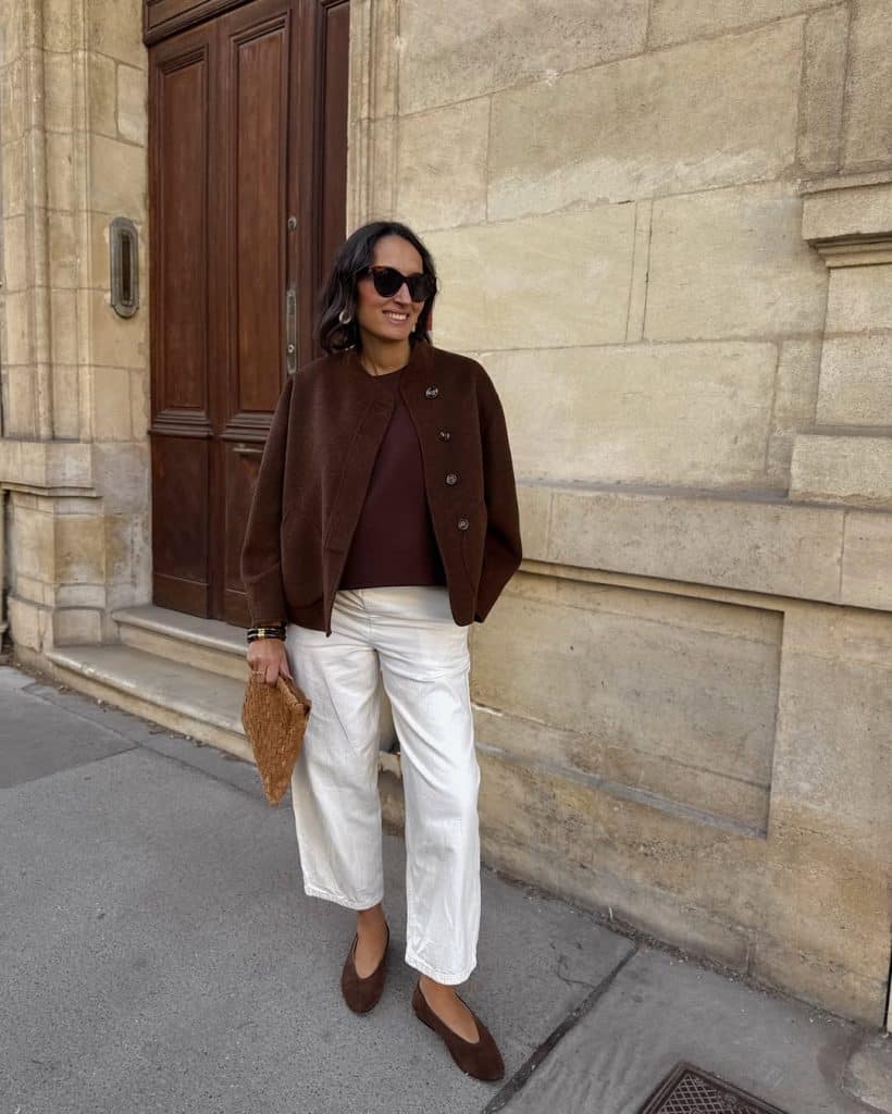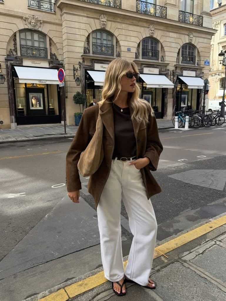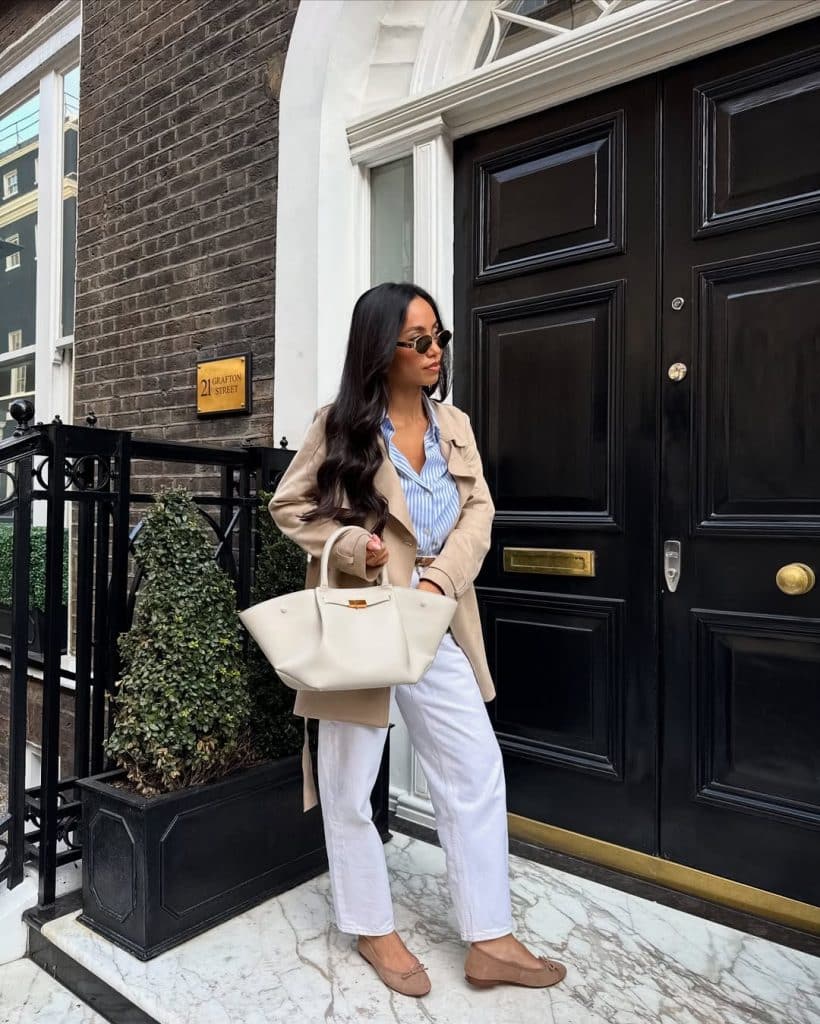 Add rain boots if needed, or go for sleek ankle boots. White jeans against a moody sky? Unexpectedly stunning.