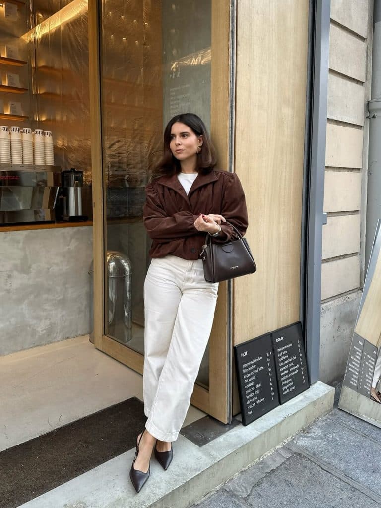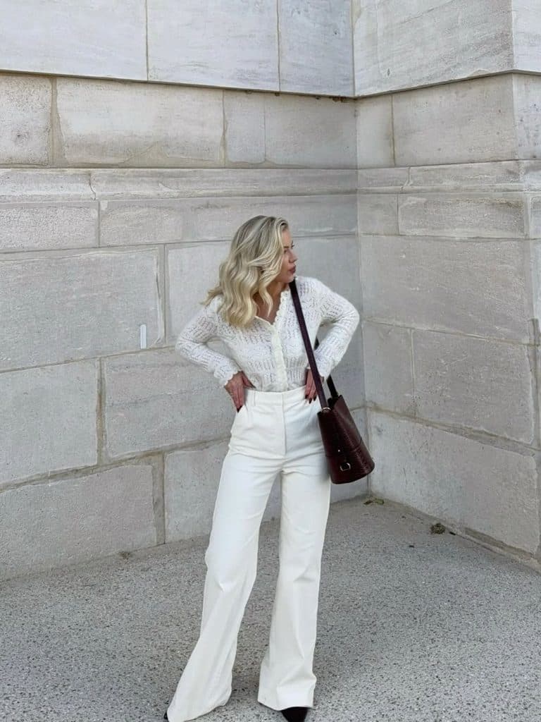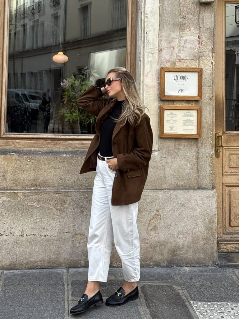 White jeans in the cooler months look effortlessly polished when styled correctly.