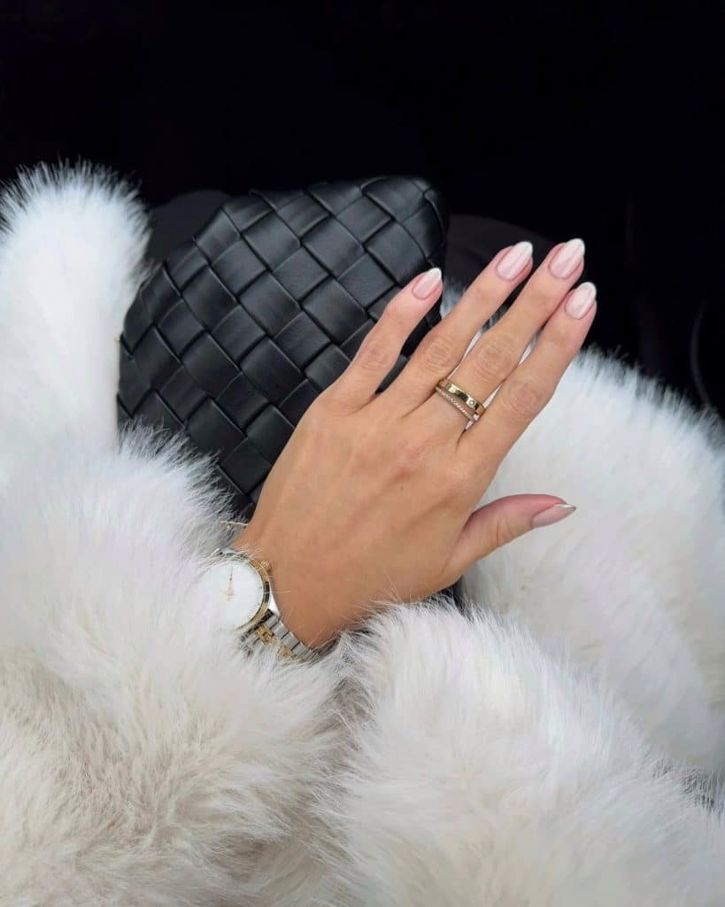 With a barely-there pink base and perfectly sculpted white tips, these nails exude timeless appeal. Picture them wrapped around a champagne flute, très chic.