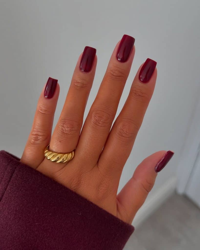 Deep burgundy is the go-to “power polish” of the old money wardrobe.