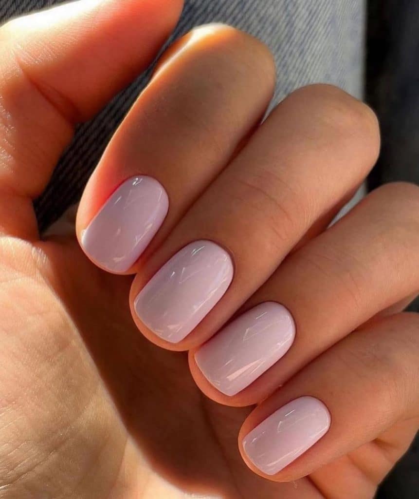 The smooth, glossy pink in this mani captures light beautifully, almost giving it a porcelain finish. With its short, natural shape, this look is pure elegance with zero fuss.