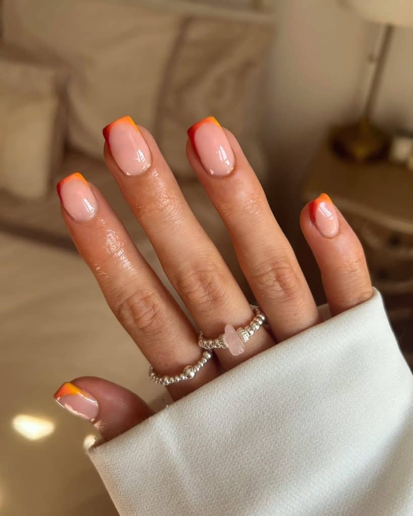 Fall leaves, but make it chic. These French tips glow in a gradient of red, orange, and golden yellow, just like a perfect fall sunset.
