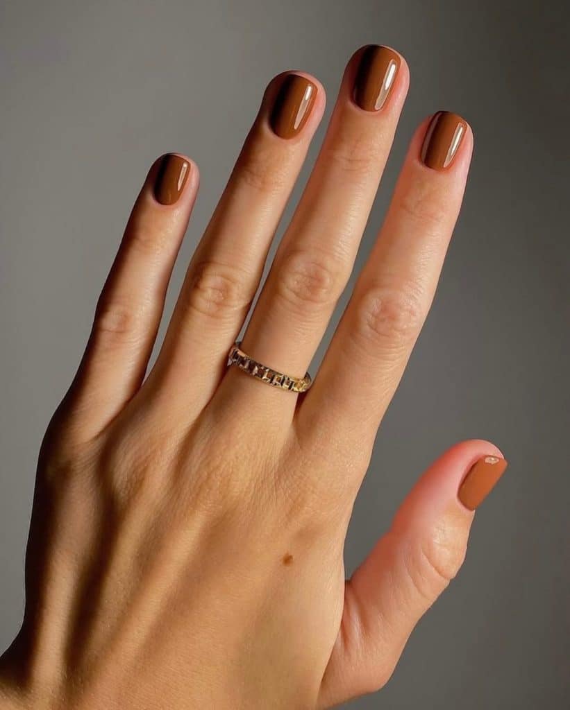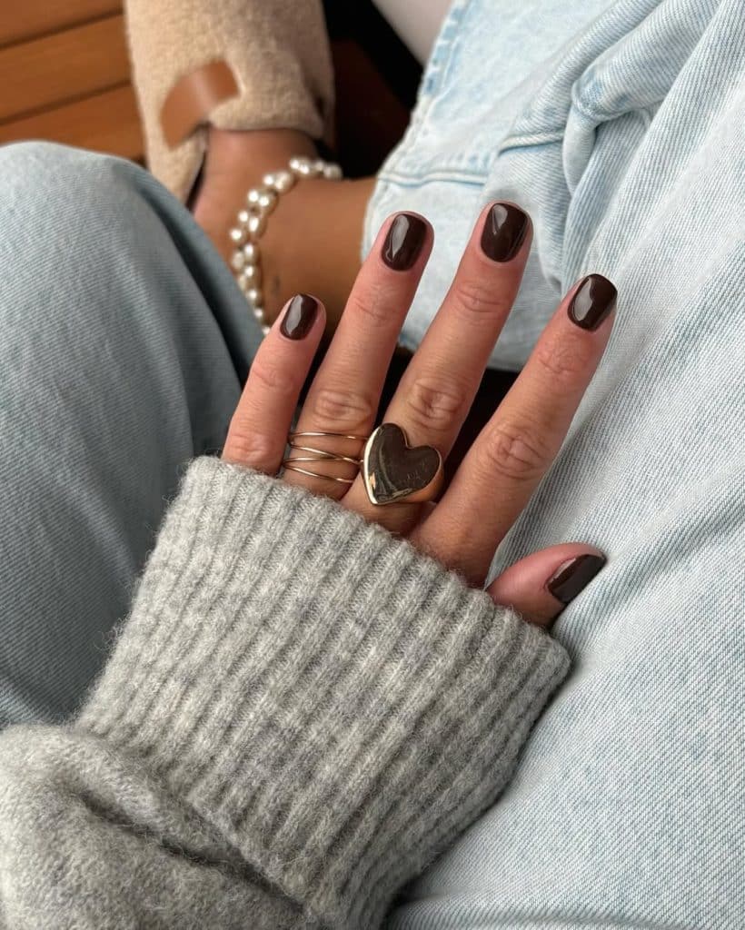Simple doesn’t mean boring. These short, rounded nails in cocoa brown are low-maintenance and endlessly wearable.
