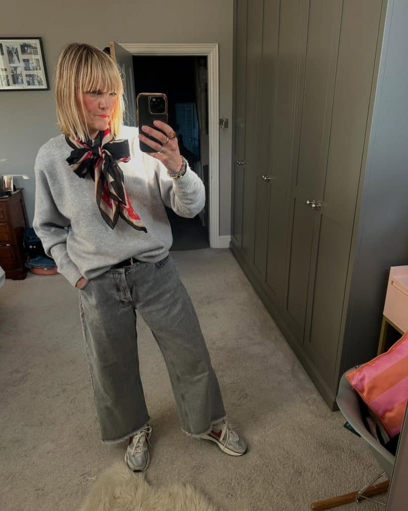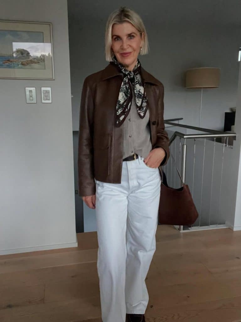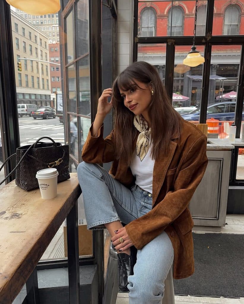 This style works beautifully with open collars, cozy knits, or with a blazer – it’s casual, polished, and so easy to pull off.