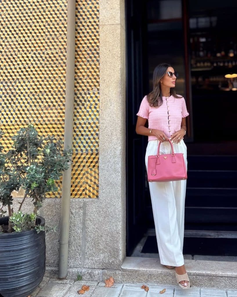 White brings crispness to pink outfits, making everything look fresh and modern.