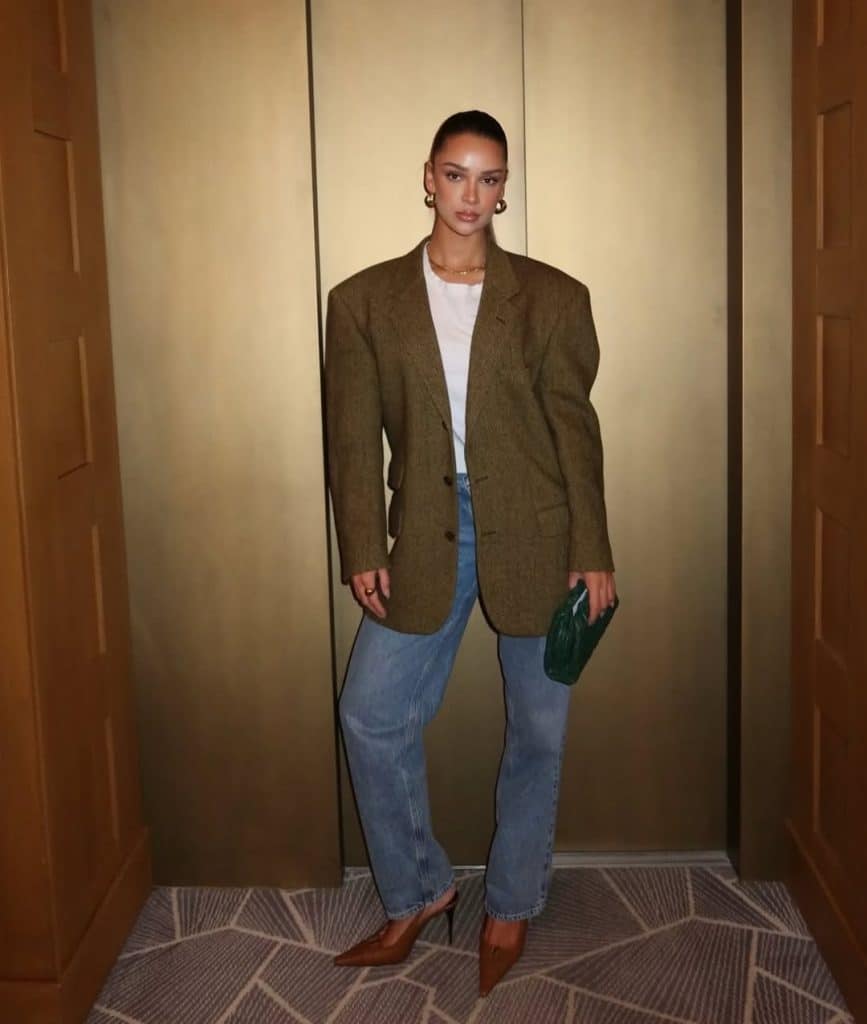 The oversized blazer is relaxed perfectio, like borrowing your partner’s jacket and styling it with precision.