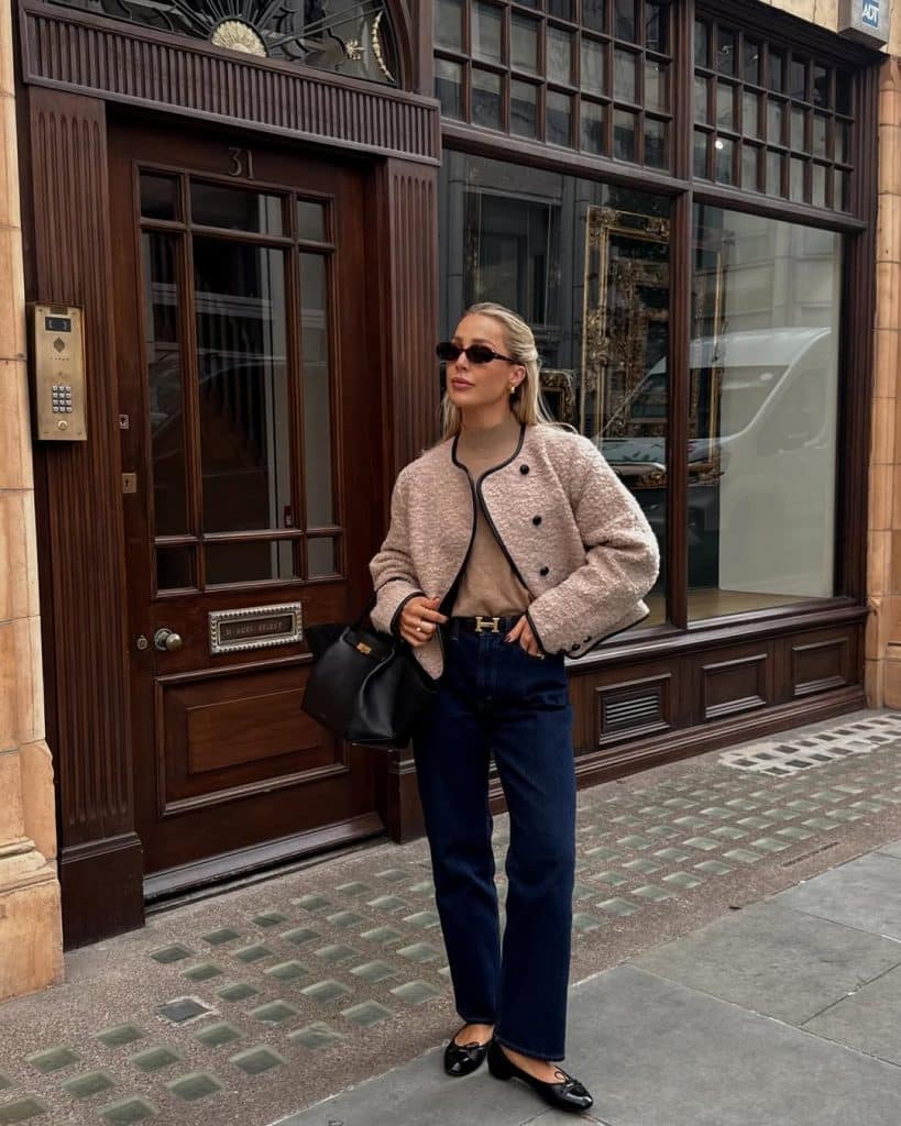 Slip into straight-leg jeans, add a woven tweed jacket, and watch your outfit transform.