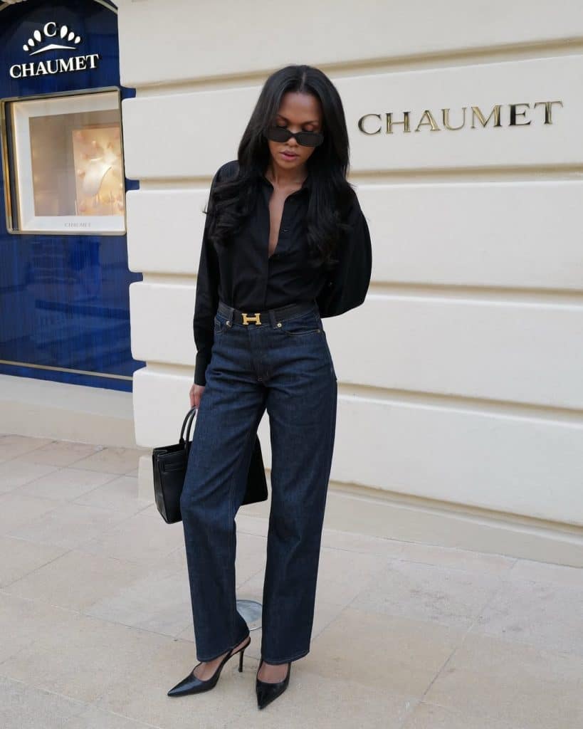 Even the simplest pair of jeans looks refined when paired with pointed heels, structured flats, or quality loafers.
