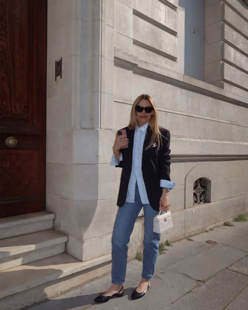 A blazer adds instant structure. Jeans keep it grounded.