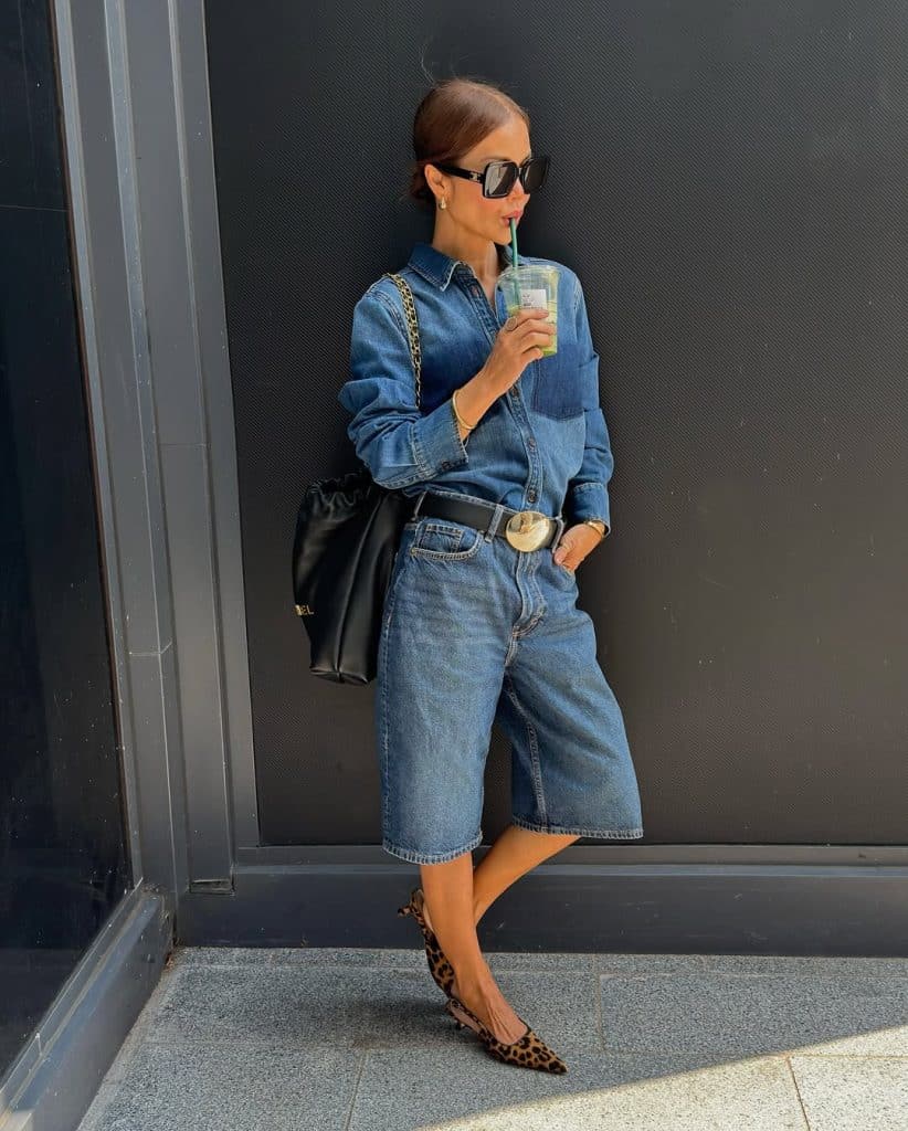 Denim-on-Denim Bermuda Shorts Outfit